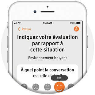 Il suffit de quelques minutes pour noter différents environnements d’écoute et laisser des commentaires à leur sujet. L’application vous permet d’évaluer les situations standard suivantes : conversation dans un environnement calme, conversation dans le bruit et sons à l’extérieur.