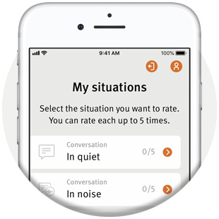 • Ponto Care guides patients through different listening situations in their daily life and encourages them to rate and comment on these situations using a 1 to 5 scale.