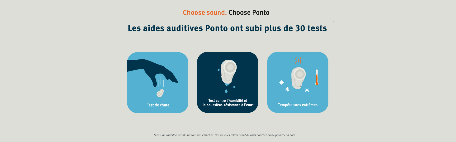 Les aides auditives Ponto ne sont néanmoins pas étanches. Pensez à les retirer avant de vous doucher ou de prendre un bain.