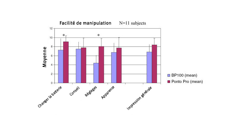 En termes de manipulation, les participants ont trouvé qu'il était beaucoup plus facile de remplacer la pile et manipuler les boutons de contrôle sur Ponto Pro plutôt que sur BP100.