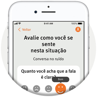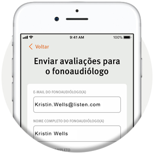 Quando você usa o aplicativo Ponto Care™, você tem a opção de enviar por e-mail um relatório com seu nome, avaliações, comentários e período de uso do aplicativo ao seu fonoaudiólogo.